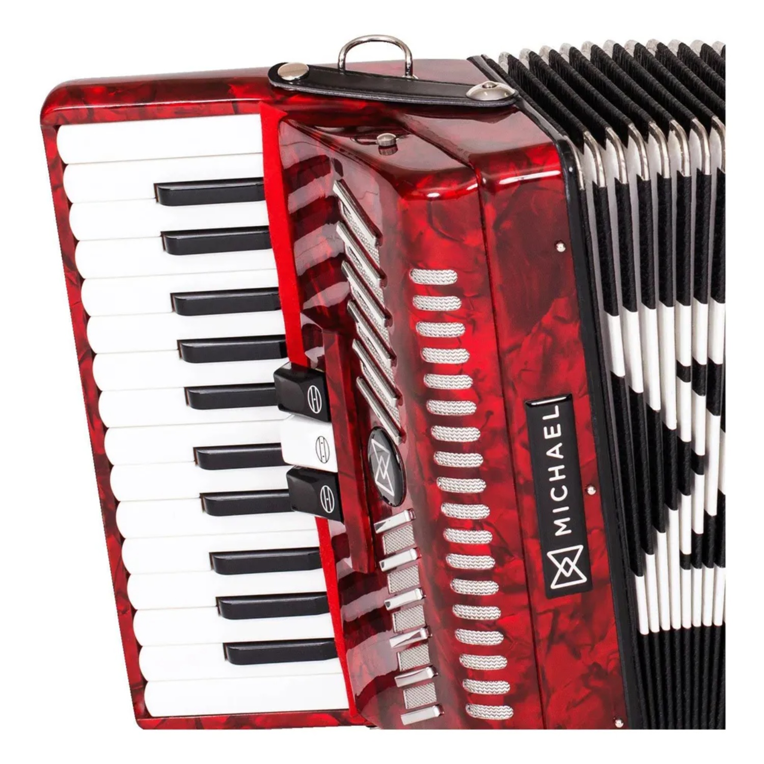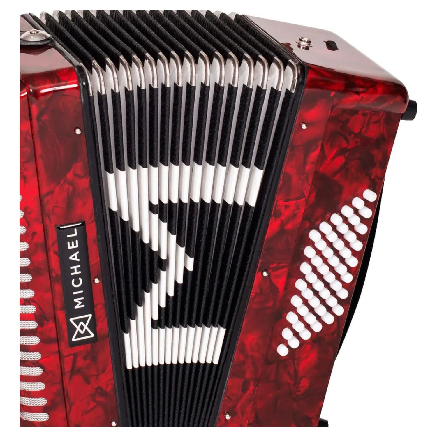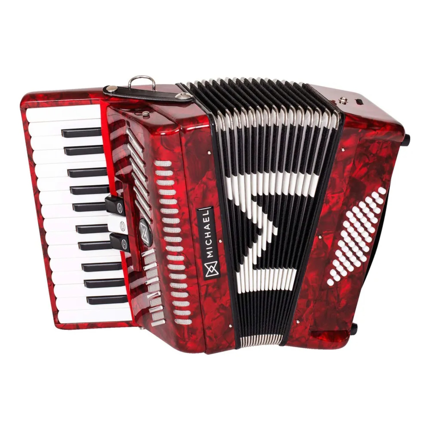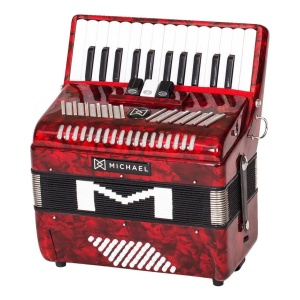 O acordeon Michael ACM4803N, de 48 baixos e 3 registros, é um instrumento confortável e de timbre equilibrado. Oferece ótimos componentes, como as palhetas de aço inoxidável e o fole de linho e couro, protegido por cantoneiras de metal. É construído com madeira de lei, matéria-prima nobre e robusta, além de possuir 26 teclas macias. Vem ainda com bag e alça retrátil, de bônus! Compre o ACM4803N, um acordeon de personalidade! O ACM4803N possui 48 baixos, 26 teclas e 3 registros de mão direita, que permitem criar arranjos e texturas musicais diferenciadas. É uma configuração versátil, pronta para atender o sanfoneiro no sertanejo, forró, baião, xaxado e música regional do sul do país. Seu fole, construído em linho e couro, é mais robusto, garantindo pressão e estabilidade ao tocar. Vale destacar ainda as cantoneiras externas de metal que lhe dão mais durabilidade. O acordeon ACM4803N da Michael já vem com alça retrátil e bag, com rodinhas, um acessório importante para proteger o instrumento com eficiência e dar agilidade nos deslocamentos. Este acordeon possui componentes de alta qualidade. Destacam-se as palhetas de aço inoxidável, que favorecem a projeção sonora, e as teclas macias, que dão dinamismo e velocidade nos arpejos e outras técnicas da mão direita. Este acordeon possui acabamento impactante. São opções de cores peroladas e sólidas que irão encantar sanfoneiros de todos os estilos. O Acordeon Michael ACM4803N é um instrumento compacto, com elevado padrão de construção e sonoridade intensa, ideal para sanfonistas que desejam conforto e boa qualidade sonora.