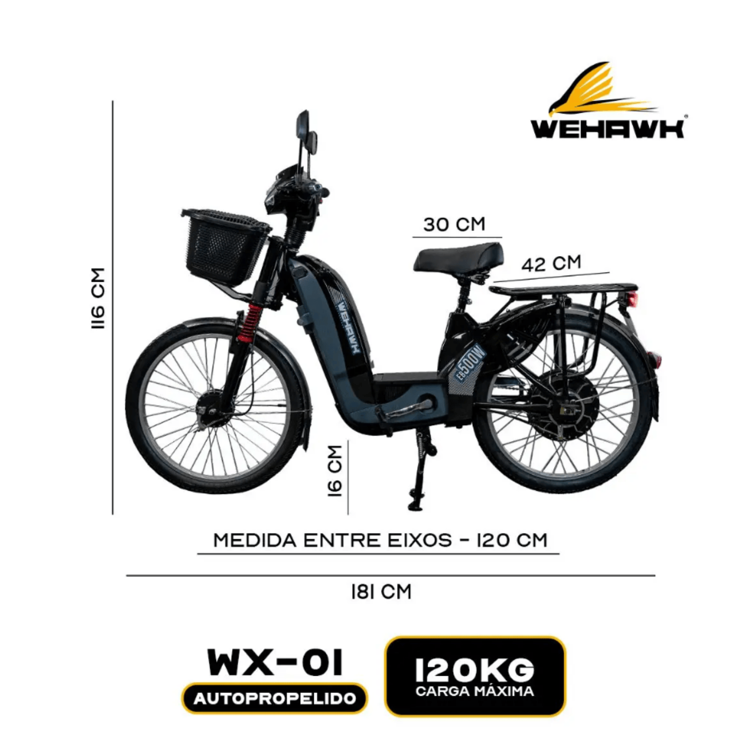A bicicleta elétrica WeHawk WX01 Black 500W é ideal para quem busca mobilidade urbana em Curitiba com economia, conforto e praticidade. Com motor potente e estrutura reforçada, é perfeita para deslocamentos diários, oferecendo estabilidade e ótimo desempenho no trânsito da cidade.