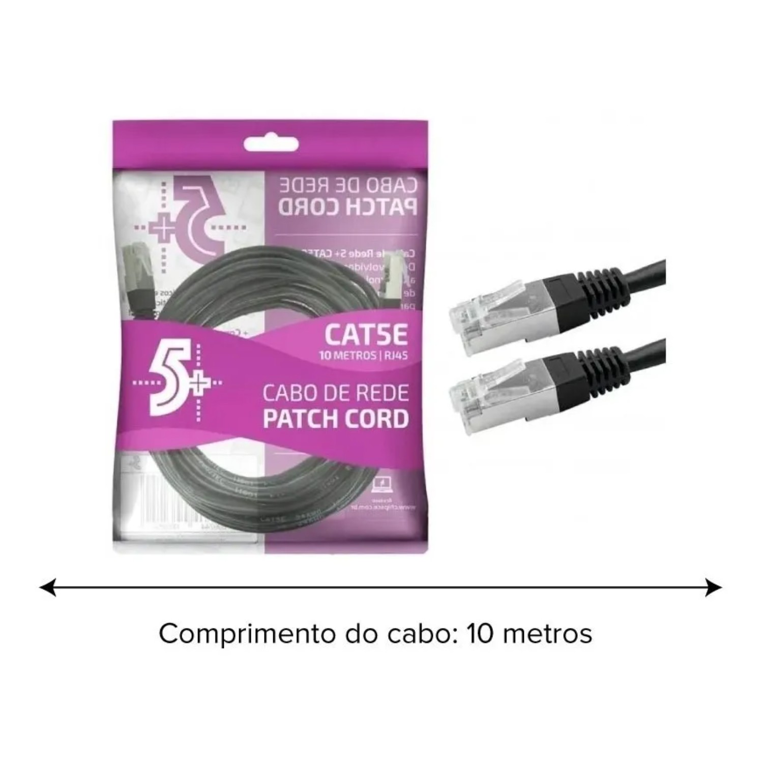 CABO DE REDE PATCH CORD CAT5E 10 METROS PRETO CHIP SCE 018-9919
