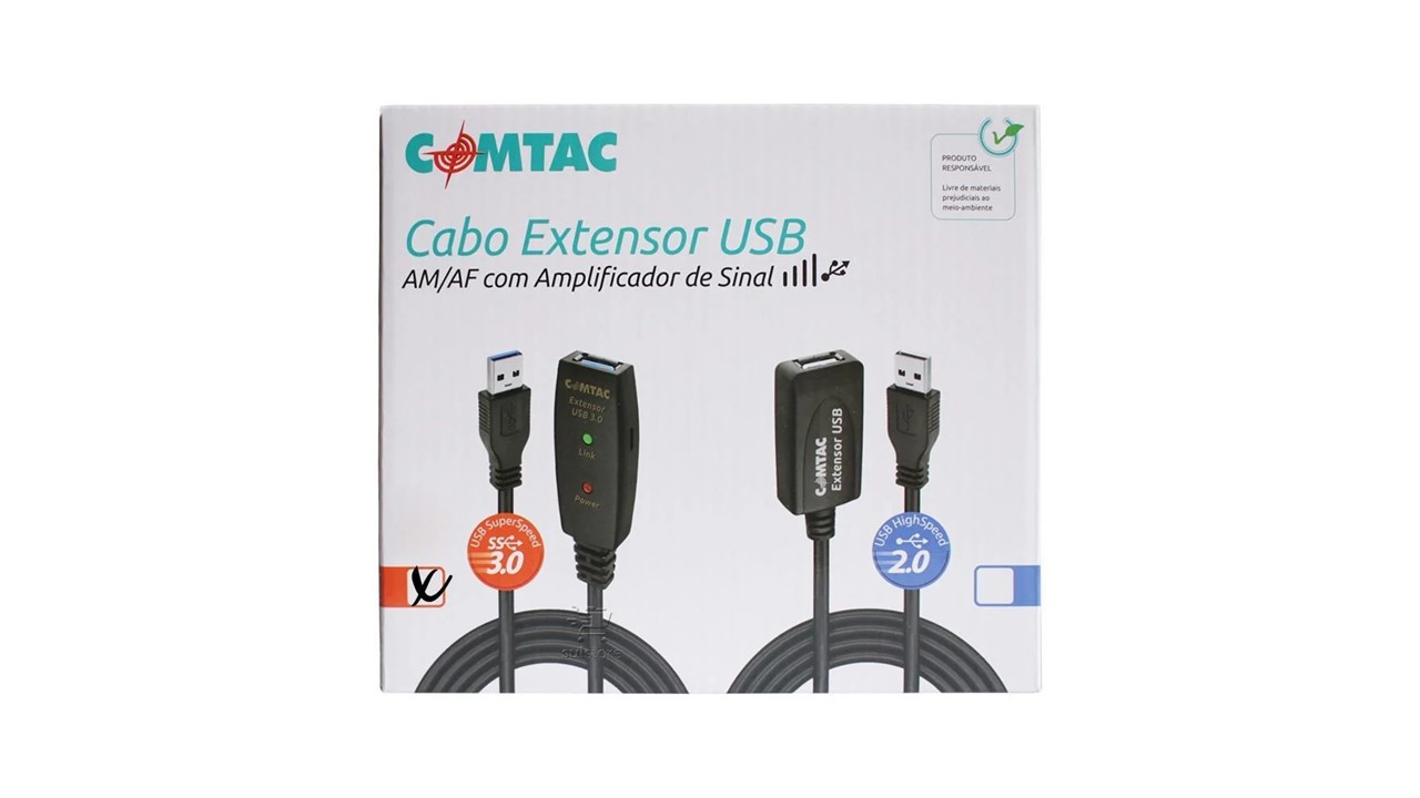 O Cabo Extensor USB 3.0 AM/AF com 2 amplificadores de sinal é a solução para conectar dispositivos de conexão USB 3.0 a uma longa distância sem perda de velocidade. A velocidade de transferência de dados é de até 5.0 Gbps.