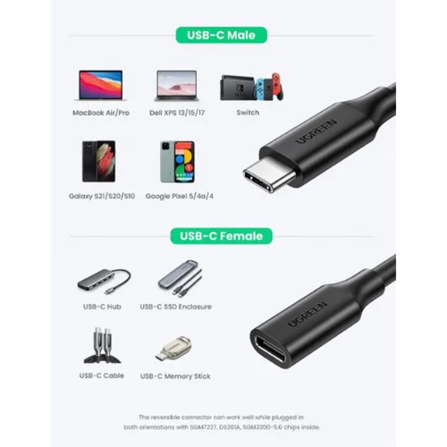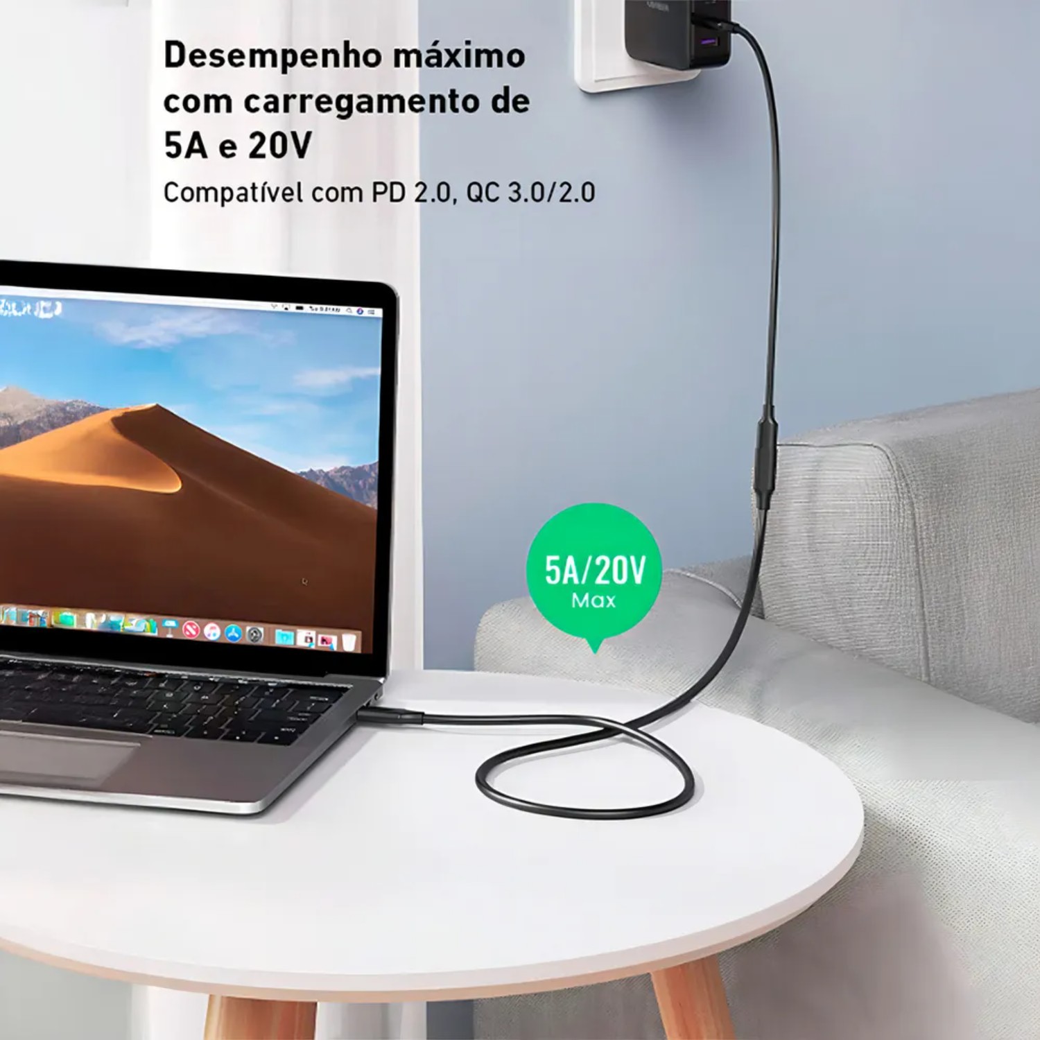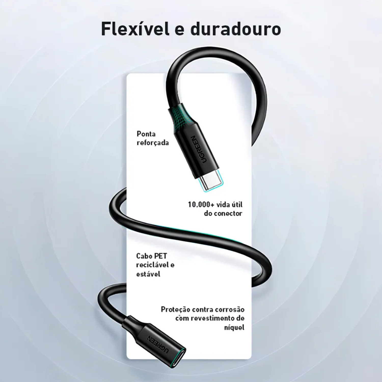 O Cabo Extensor USB-C UGREEN permite estender a conexão USB-C, oferecendo acesso fácil aos dispositivos, carga rápida, transmissão de dados de alta velocidade e suporte para resolução 4K a 60Hz. Ideal para quem busca eficiência e praticidade no dia a dia.