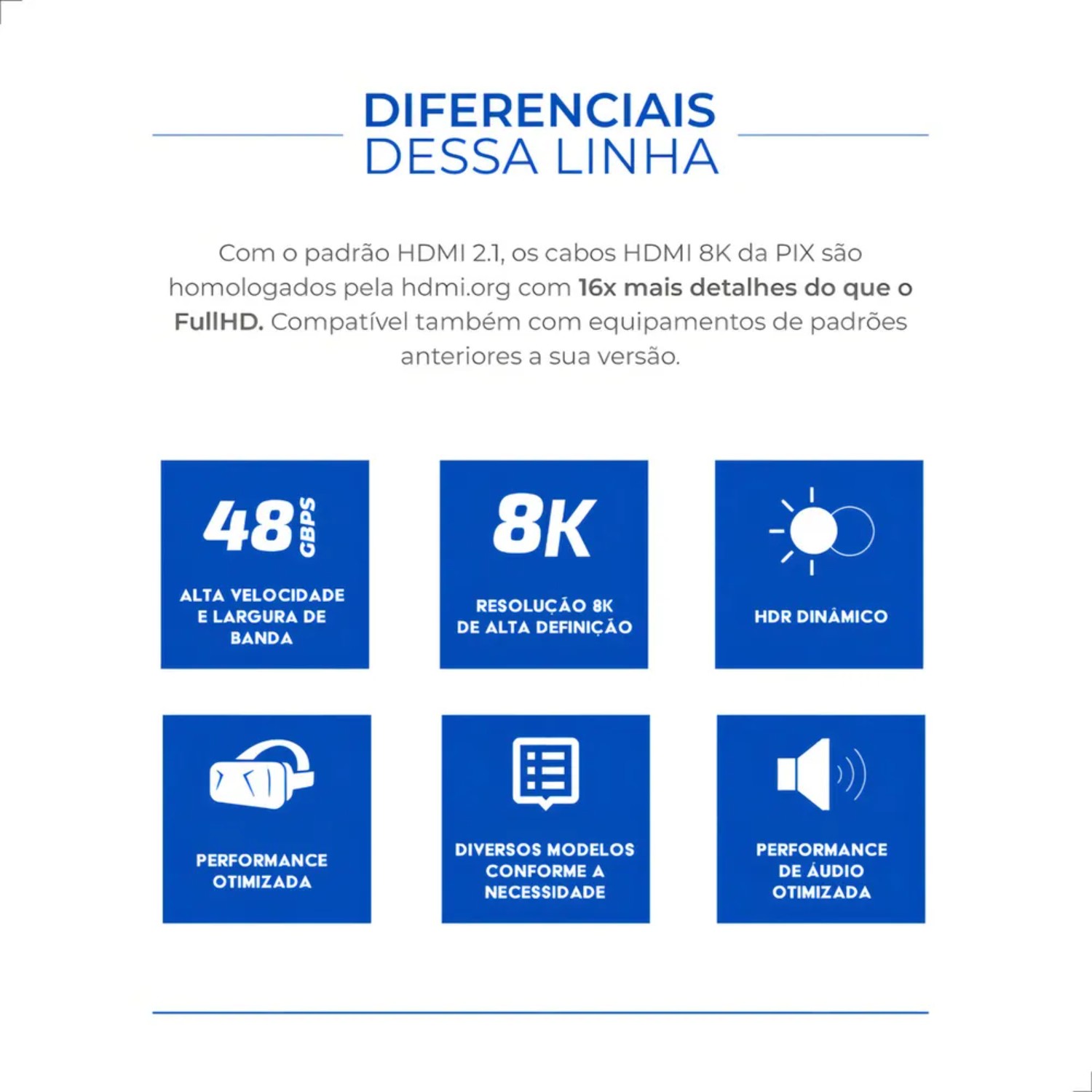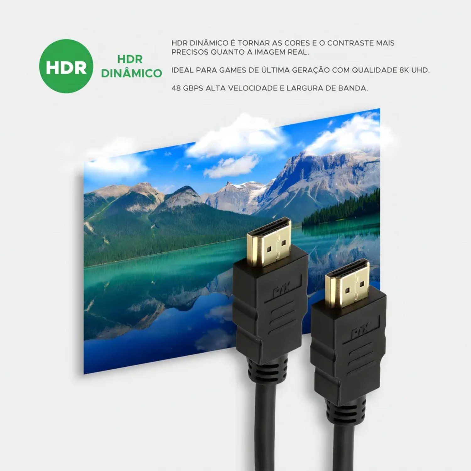 O Cabo HDMI 2.1 Gold foi desenvolvido para oferecer a melhor experiência em áudio e vídeo, atendendo aos padrões mais avançados do mercado. Com suporte a 8K Ultra HD e HDR Dinâmico, ele proporciona imagens extremamente nítidas, cores realistas e som de alta definição. Ideal para gamers, entusiastas de filmes e aplicações de realidade virtual.