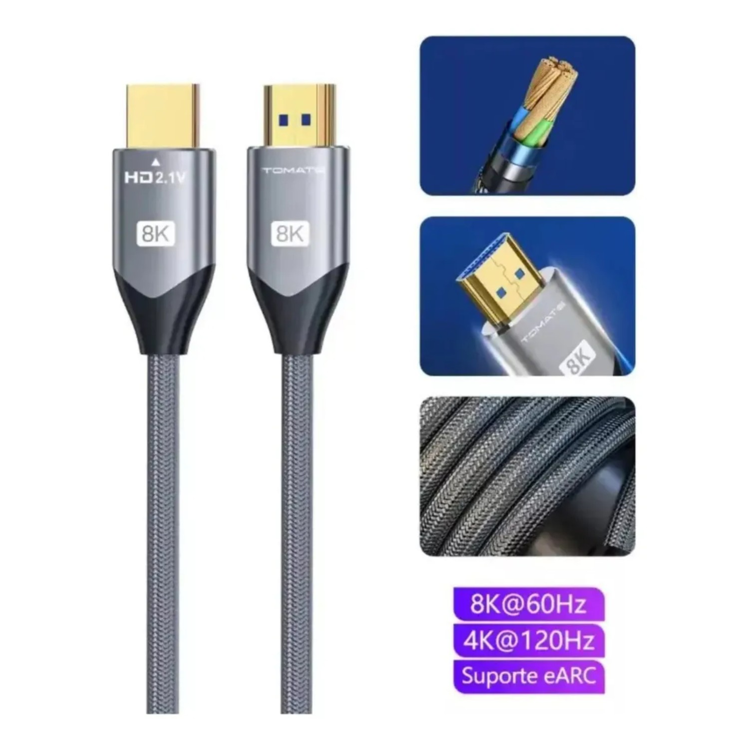 Descrição:Novo modelo de cabo HDMI de Alta velocidade com tecnologia 8K. Transmite vídeo no formato 8K, o qual possui oito vezes mais definição que o padrão. Nível de proteção superior, pois tem dupla malha de revestimento interno (Blindagem) e revestimento externo de Nylon.Informações Técnicas:Cabo HDMI 2.1 com requisitos padrõesSuporta Dolby TrueHD, DTS-HD, alta qualidade de áudio, suporta até 32 canais de som ao mesmo tempoConector folheado a ouro 24K, invólucro de liga de alumínio, alta resistência e alta durabilidadePS4/ Blu-ray/ projetor/ Set-top box/ HDMIComprimento: 3 metrosItens Inclusos:1x Cabo HDMI 8K 3 metros