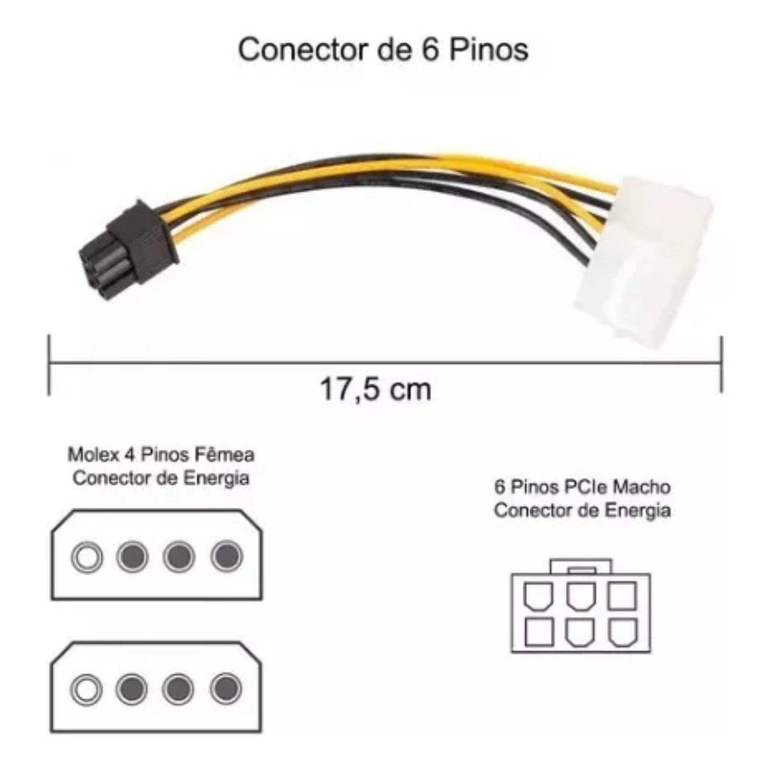 Adquira o Cabo PCI-E para Fonte ATX 8 pinos (6+2) com 2 SATA com a garantia de qualidade da 24 Info e assegure conexões seguras, organizadas e eficientes no seu PC.