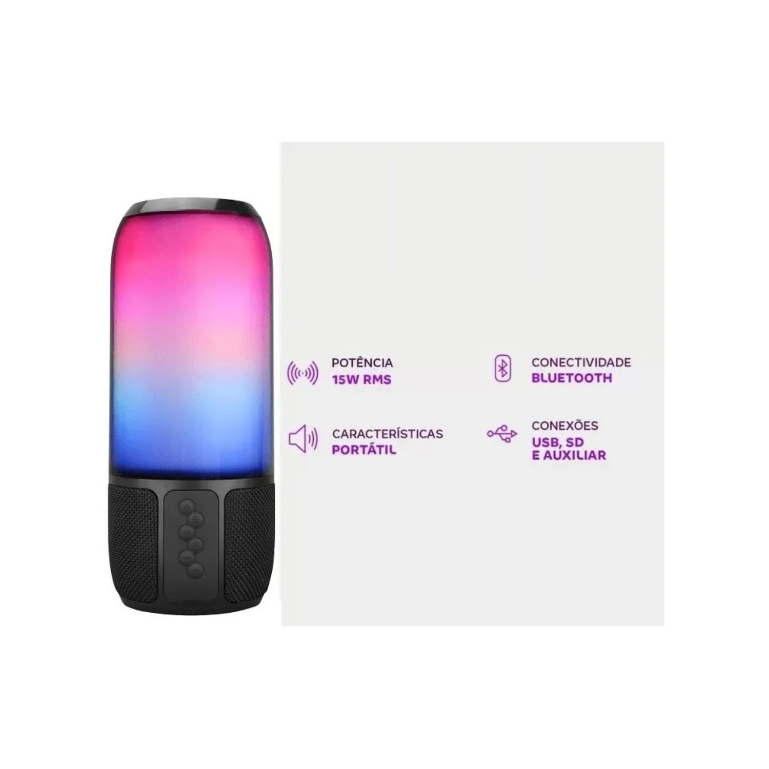 CAIXA DE SOM MULTILASER 15W COM EFEITO LED RGB SP349 COM BATERIA