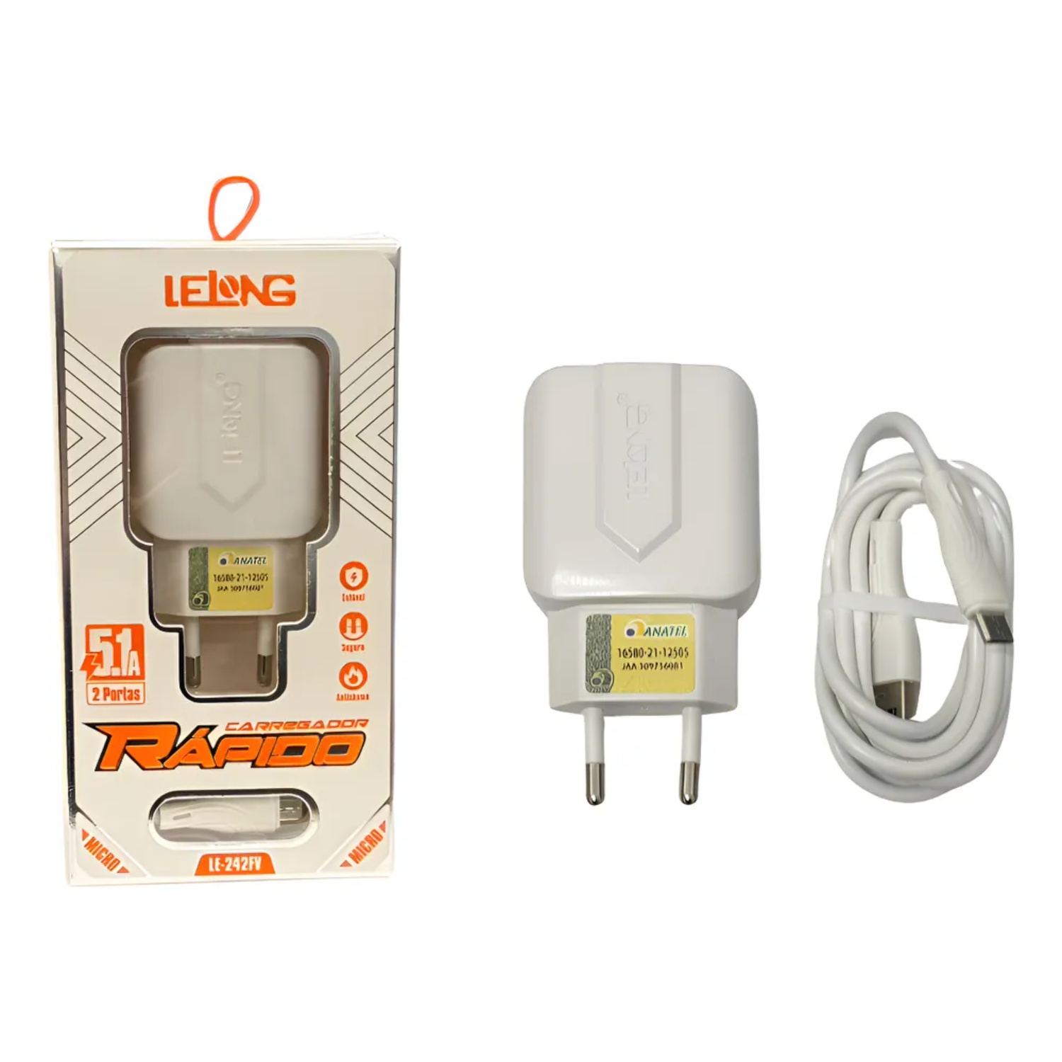 CARREGADOR MICRO USB V8 2 USB 5.1A LELONG