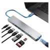 O hub ainda inclui leitor de cartão de memória, facilitando o acesso a arquivos de câmeras, drones e outros dispositivos. Com design moderno e portátil, é fácil de transportar e perfeito para quem precisa de mais conectividade sem abrir mão da mobilidade.