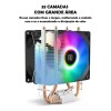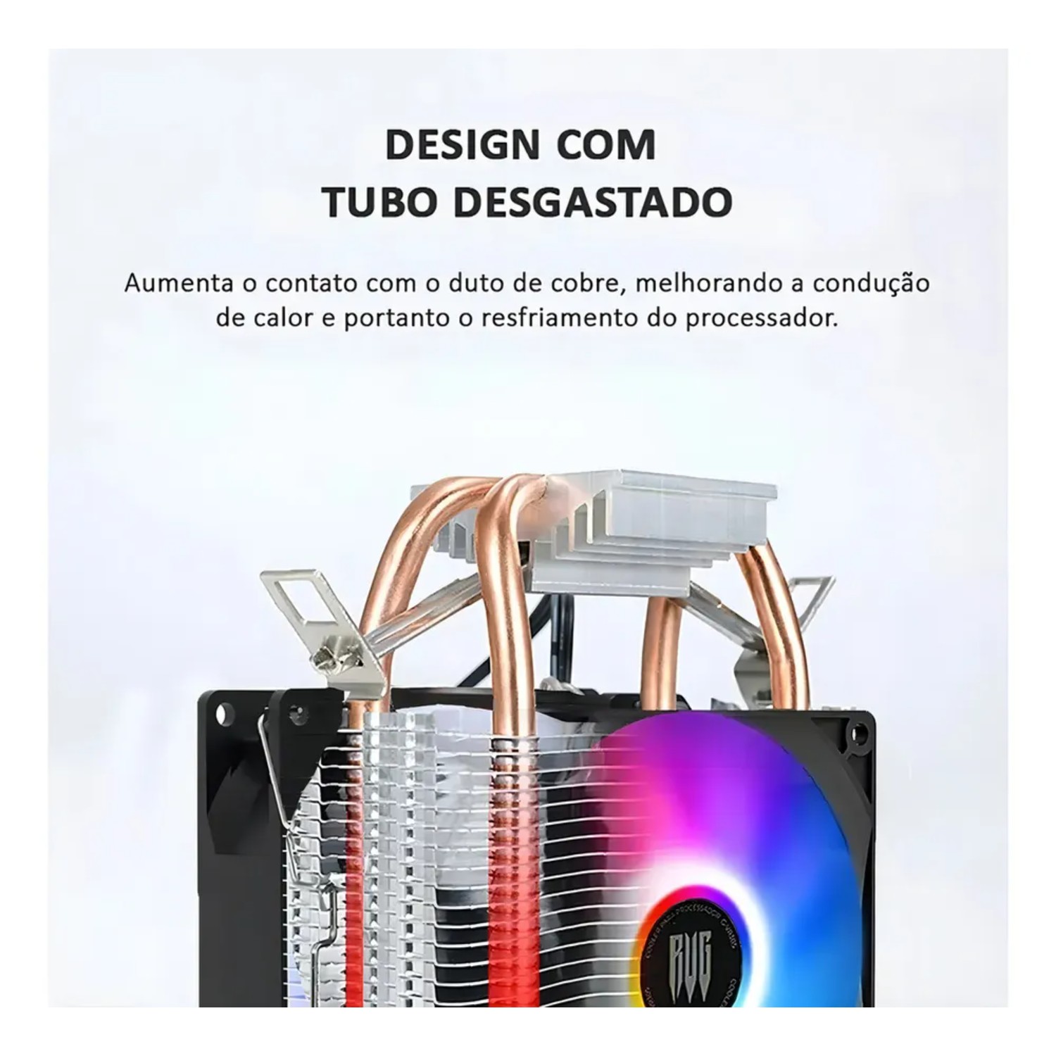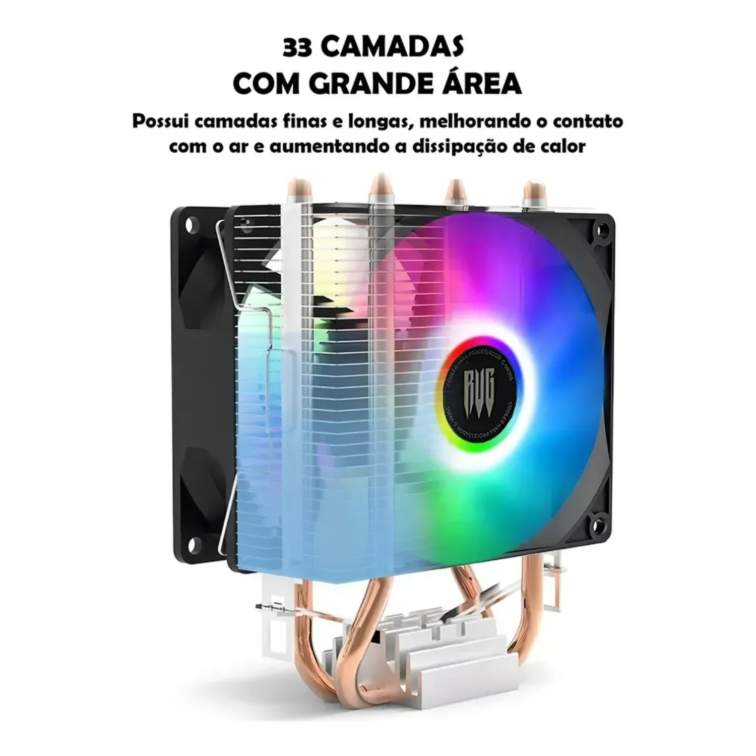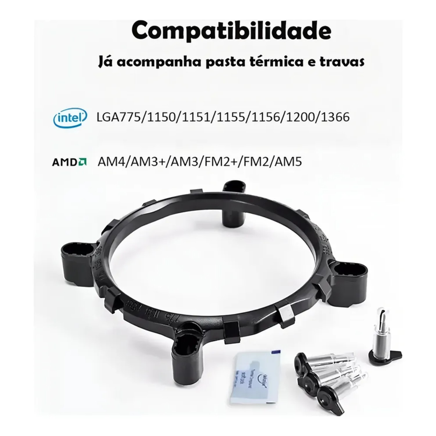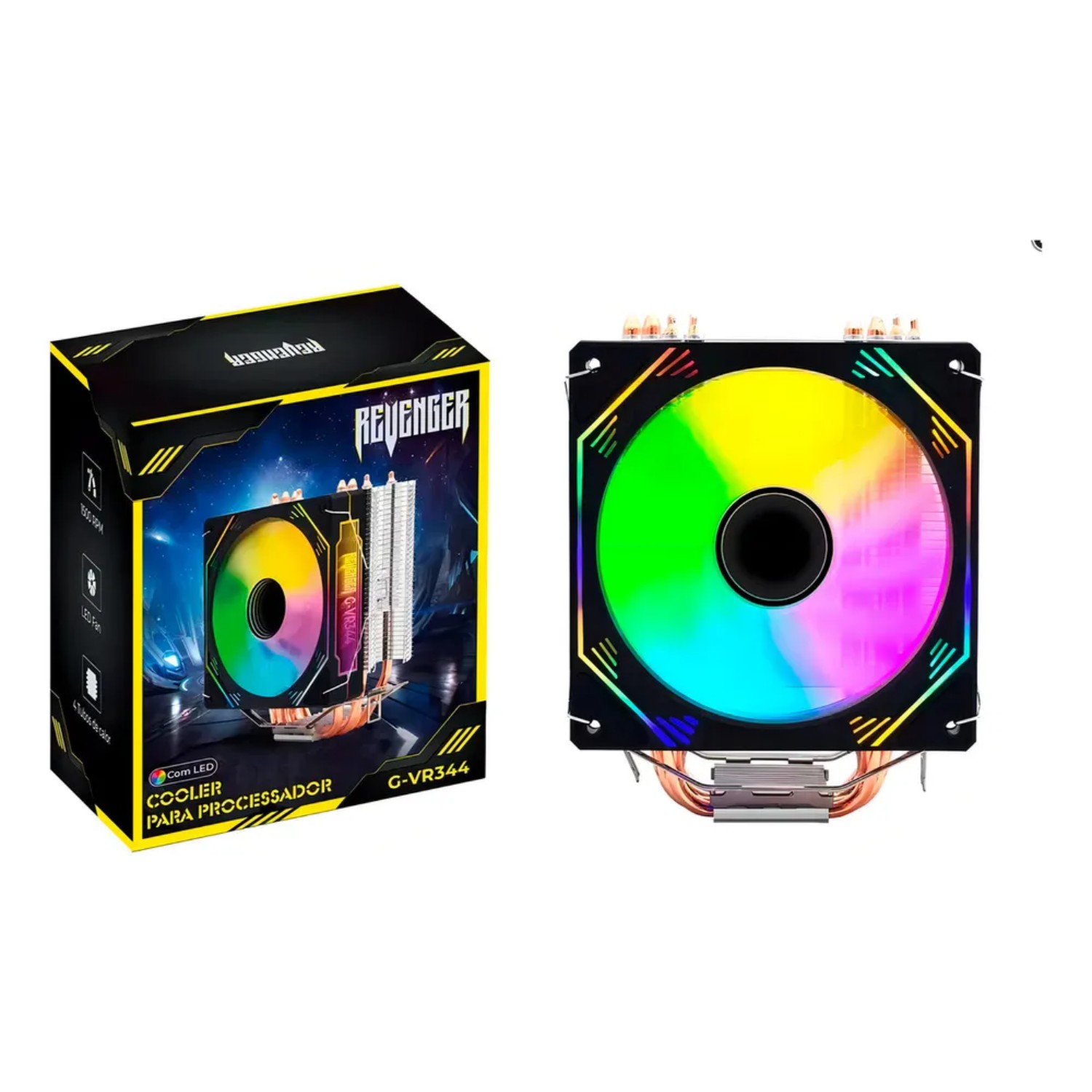 Marca: Revenger - Modelo: G-VR344 - TDP: 150W - Conector: 3 Pinos - Ruído: 28 dBA ± 10% - Vida Útil: 30.000 Horas - Tipo de Rolamento: Hidráulico - Tensão de Operação: 12V DC - Velocidade: 1500 RPM ± 10% - Corrente de Operação: 0.55A ± 10% - Dimensões: Dissipador: 122 mm (C) x 70 mm (L) x 153 mm (A) - Cooler: 120 mm (C) x 120 mm (L) x 25 mm (A) Compatibilidade - Intel: LGA 775, 115X(1200), 1700, 1366, 2011 (2066) - AMD: FM2, FM1, FM2+, AM2, AM2+, AM3, AM3+, AM4, AM5