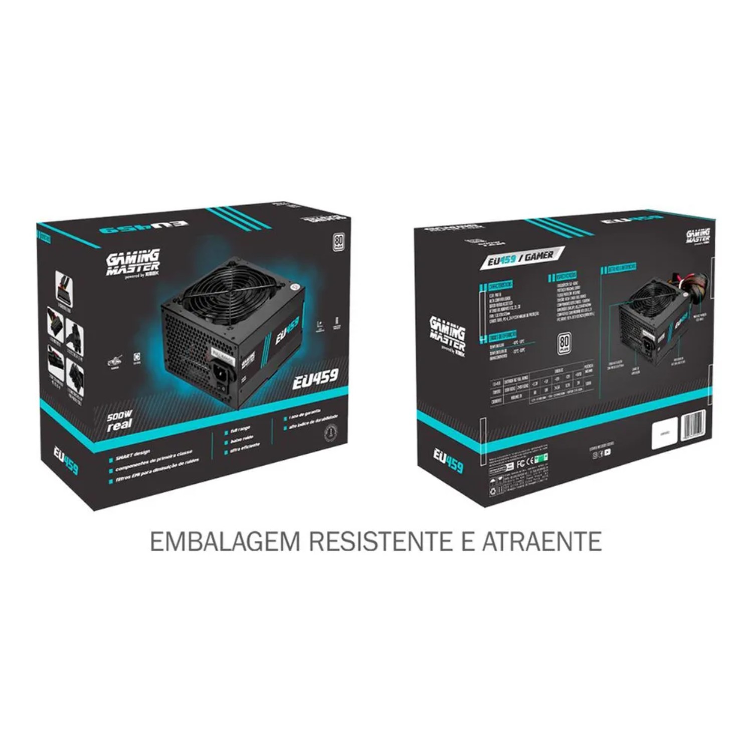 A Fonte ATX 500W KMEX Gaming Master 80 Plus White EU459 foi desenvolvida para fornecer energia estável e eficiente em computadores com desempenho intermediário, incluindo setups gamer e estações multitarefa. Com certificação 80 Plus White, esta fonte oferece melhor eficiência energética e funcionamento seguro, garantindo alimentação confiável para os principais componentes do seu PC.