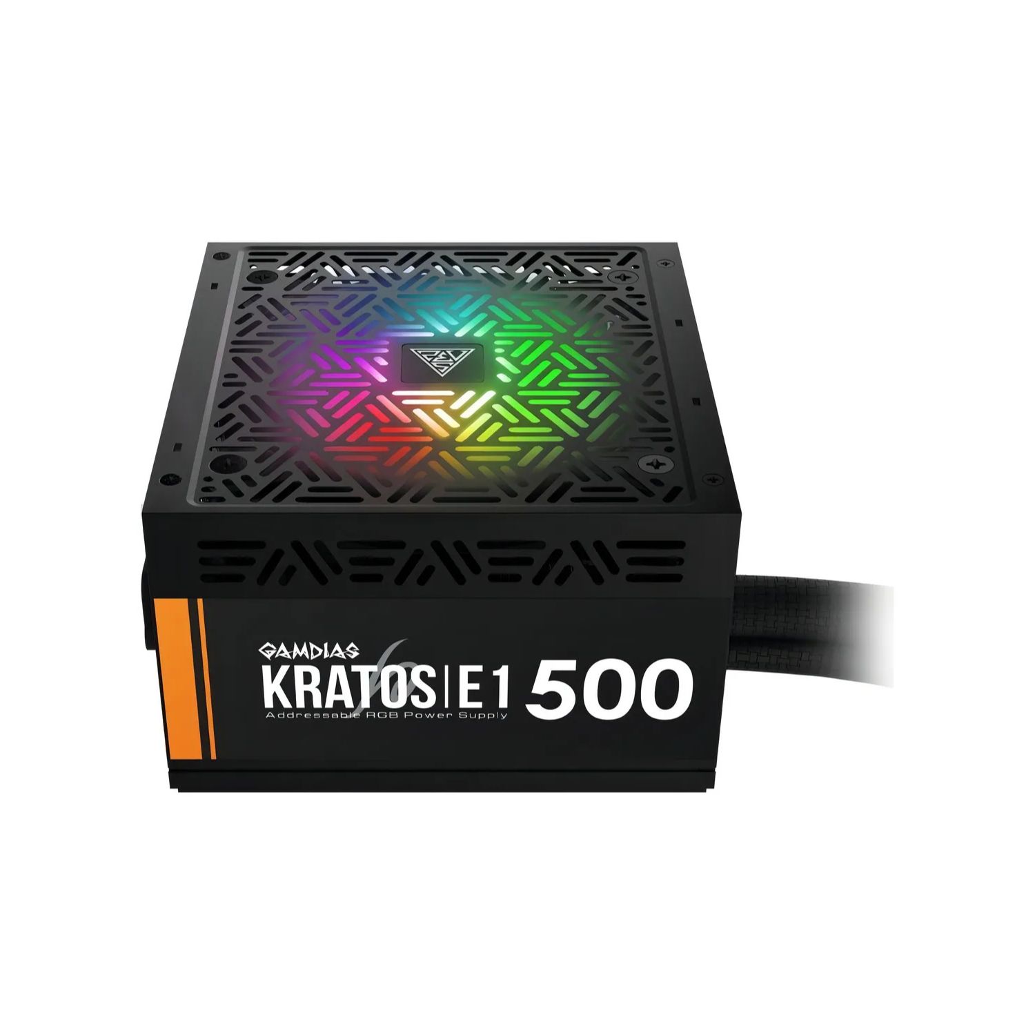 Com a sincronização da placa-mãe RGB (5V de 3 pinos), a iluminação RGB endereçável pode ser sincronizada através do software de fabricação da placa-mãe, criando um estilo consistente em todo o computador. Com menos calor convertido pela energia restante, O Kratos E1-500 oferece até 80% de eficiência energética.