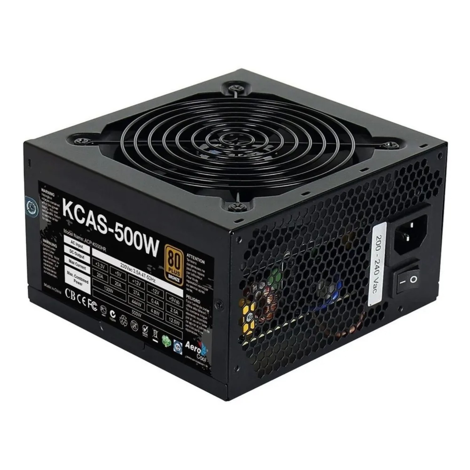 A Fonte ATX Full Range 500W Aerocool KCAS 80 Plus Bronze PFC Ativo é ideal para quem busca energia confiável, alta eficiência e desempenho consistente em computadores de uso geral, gamer intermediário ou multimídia. Com certificação 80 Plus Bronze e PFC ativo, esta fonte entrega fornecimento de energia mais limpo e estável, além de proteção aprimorada contra variações da rede elétrica.