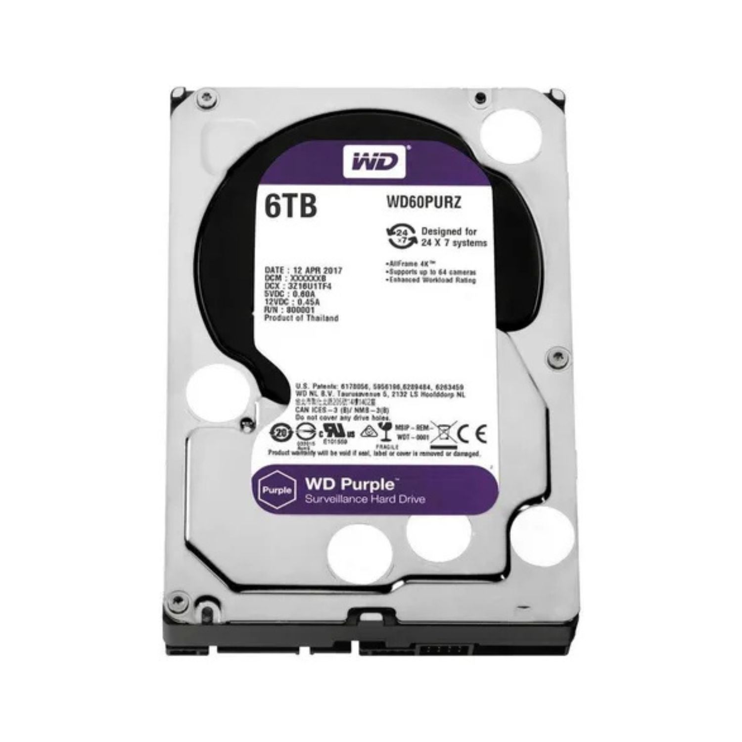 O WD Purple WD64PURZ é um HD interno de 6TB desenvolvido especialmente para sistemas de vigilância. Com 5400 rpm, cache de 256 MB e interface SATA, garante armazenamento confiável de vídeos contínuos, sendo ideal para câmeras de segurança.