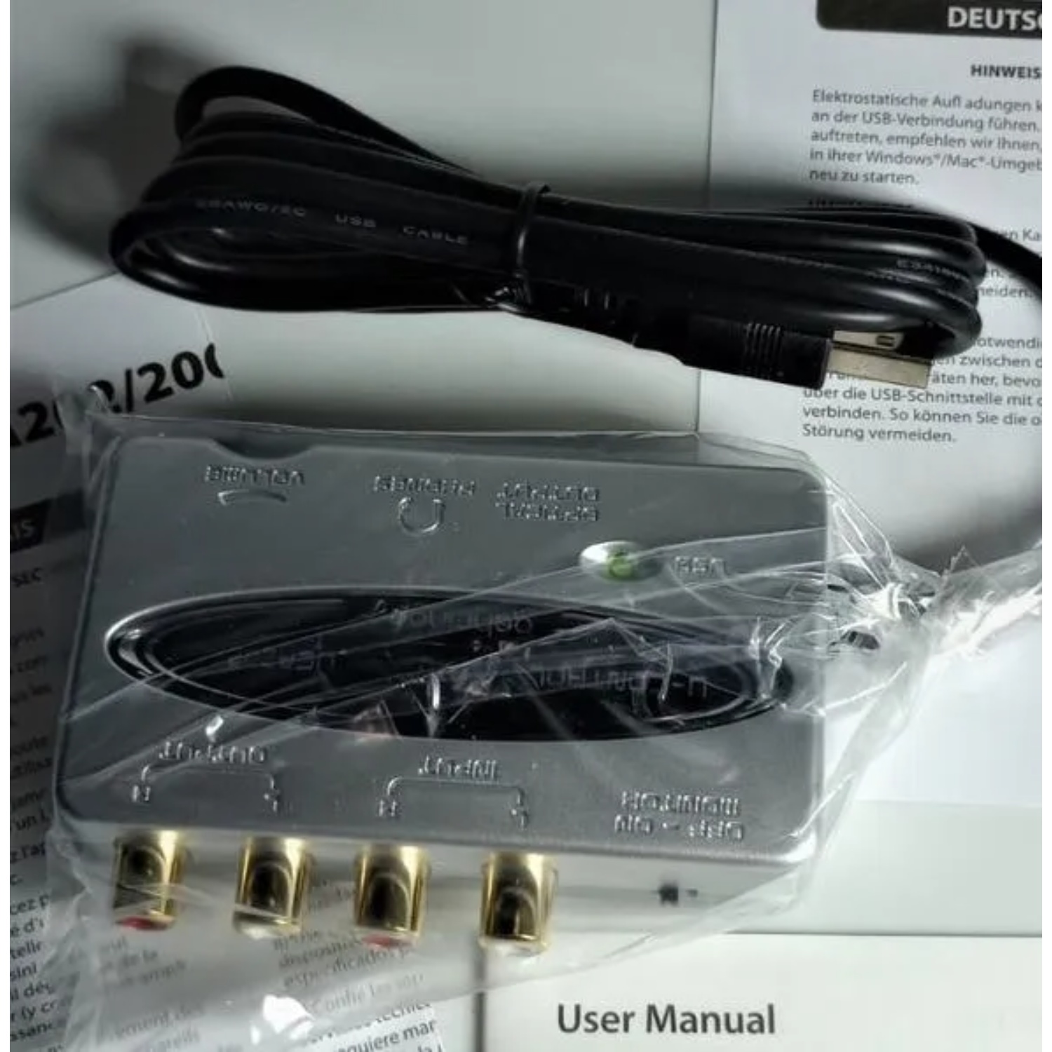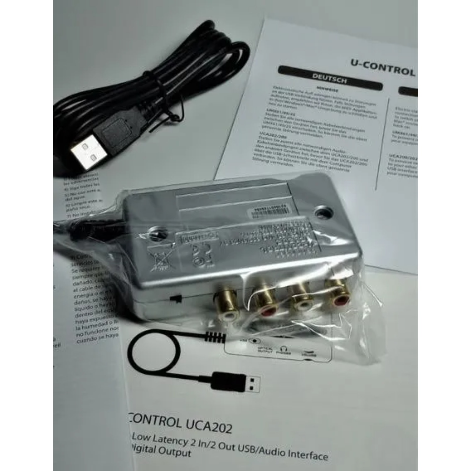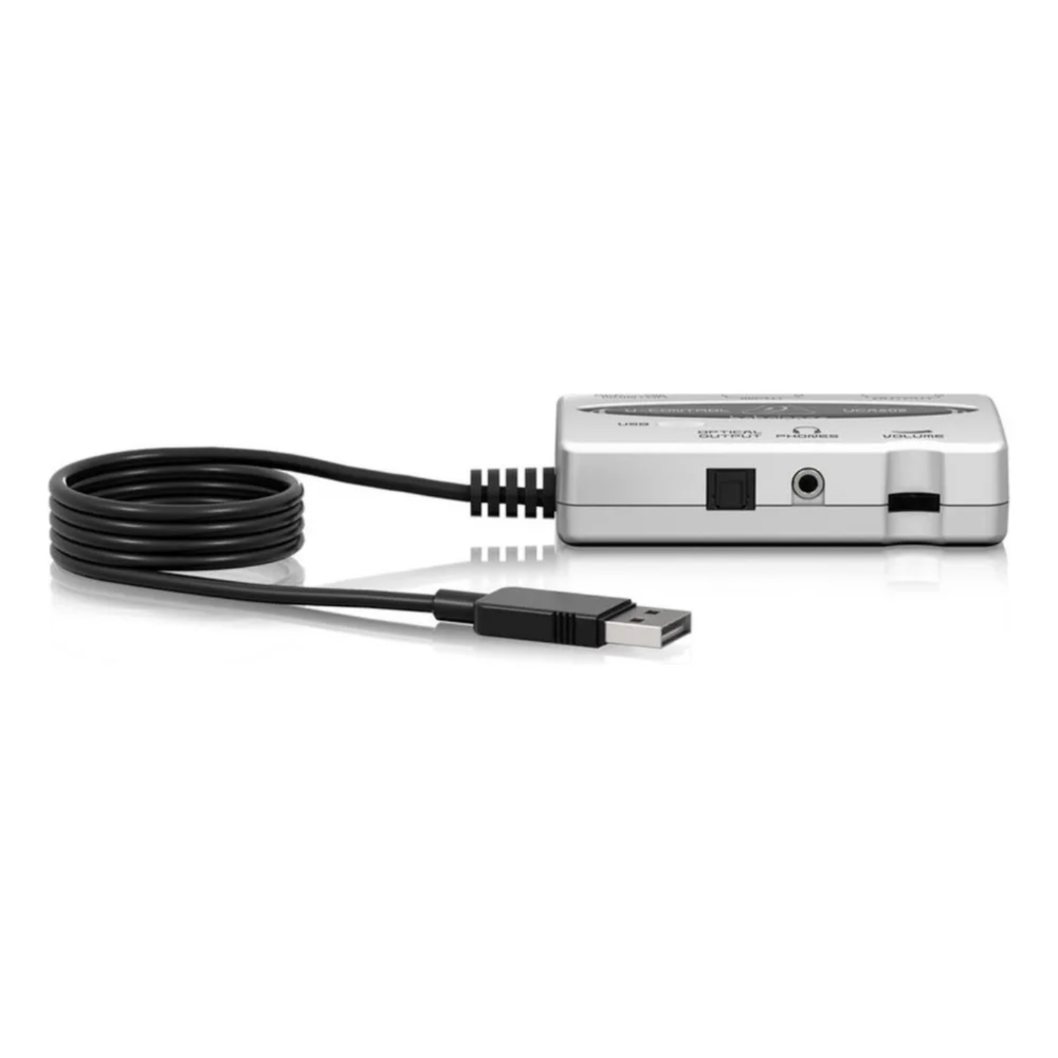 Interface de Áudio Behringer U-Control UCA202 com 2 Canais e 16 bit/48kHz A interface de áudio USB UCA202 da Behringer permite conectar instrumentos e outros dispositivos de áudio ao seu computador, combinando efetivamente os mundos analógico e digital. Ele consegue isso fornecendo duas entradas e saídas analógicas mono (para monitoramento), conectividade USB e uma saída óptica S/PDIF adicional. A saída de fone de ouvido estéreo possui um controle de nível dedicado e permite ouvir tanto a entrada como a saída. Imagine as possibilidades... Quando usado como uma interface profissional entre um console de mixagem e seu computador, a UCA202 lhe dá inúmeras opções, incluindo a conexão das saídas RCA. Além disso, a conexão aos canais de entrada do mixer permite que você use o recurso Aux Send do seu mixer para criar um monitor de mixagem extremamente versátil para sessões de gravação.