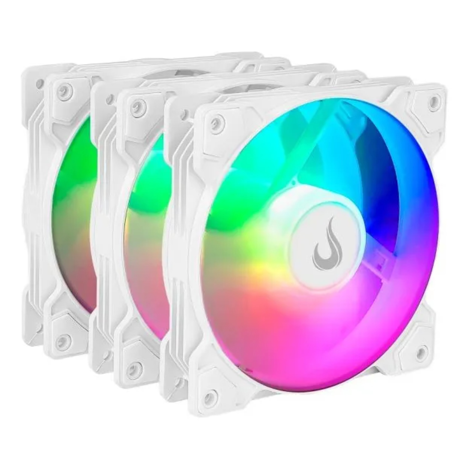 KIT 3 FANS GAMER RISE MODE X LED RAIMBOW BRANCO RM-XLD-02-RBW