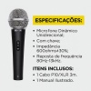 Especificações: – Microfone Dinâmico Unidirecional – Com chave – Impedância 600ohms+-10% – Reposta de frequência 80Hz-13kHz – Cabo 3m