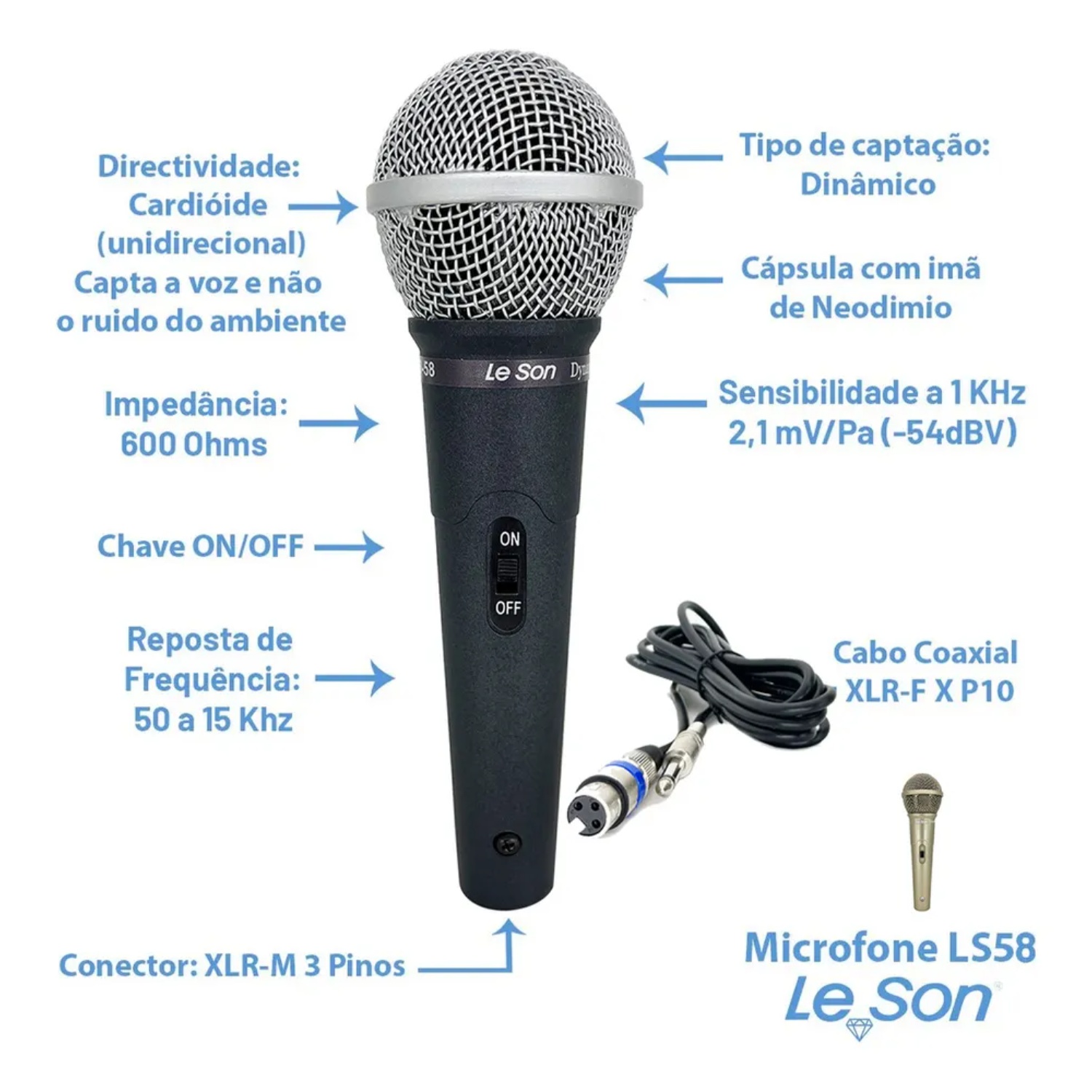MICROFONE COM FIO LESON LS58 DE MÃO 1 BASTÃO