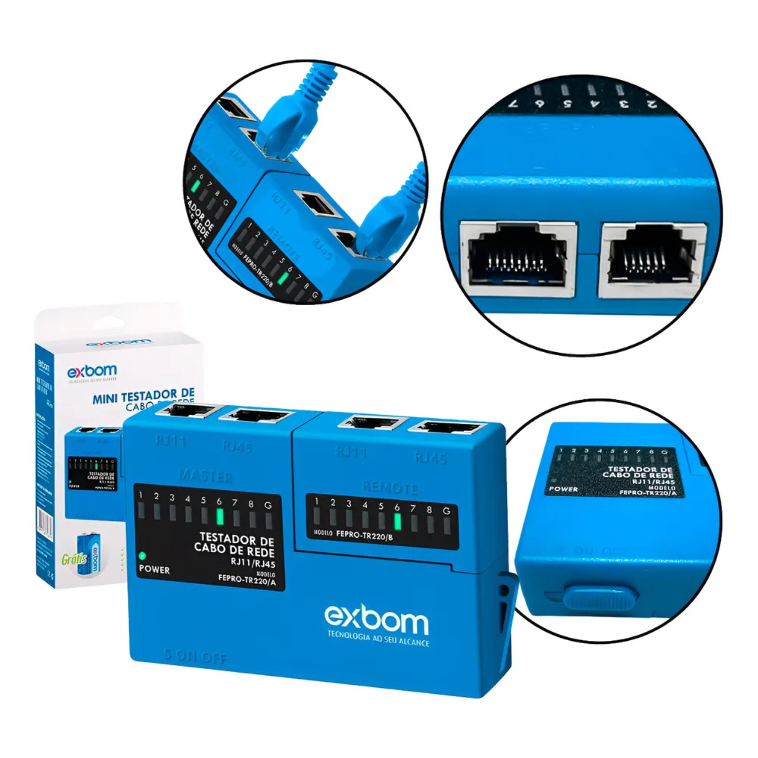 O Mini Testador de Cabos de Rede RJ45 e RJ11 é uma ferramenta indispensável para profissionais e entusiastas de tecnologia que exigem rapidez e precisão nos diagnósticos de conexões de rede e telefonia. Com um design compacto e robusto em plástico ABS, este testador vem equipado com um sistema Master e Remoto, facilitando a checagem de cabos com total praticidade. Seus indicadores LED oferecem uma visualização clara e sequencial, permitindo identificar falhas como conexões invertidas, curto-circuito, fios abertos ou cruzados. Sua versatilidade se destaca por ser compatível com LAN e switches Gigabit, garantindo eficiência em diversos cenários de uso. Com funções de varredura rápida ou lenta, os testes são realizados de forma eficaz, e a alimentação é feita por uma bateria 9V inclusa, tornando-o ainda mais prático. Este mini testador é a solução perfeita para quem busca qualidade e confiabilidade em suas medições. Informações Técnicas: Estrutura em plástico ABS de alta resistência Sistema Master e Remoto integrado Compatível com conectores RJ45 e RJ11 Diagnóstico de conexões invertidas curto-circuito aberto e cruzado Indicadores LED para checagem visual sequencial Sequência de teste Master 1-2-3-4-5-6-7-8-G Sequência de teste Remoto RJ45 1-2-3-4-5-6-7-8-G RJ11 1-2-3-4 Alimentação bateria 9V DC inclusa Dimensões aproximadas 9,5 x 6,4 x 2,4 cm Itens Inclusos: 1x Testador de Cabos 1x Manual de Instruções 1x Bateria 9V