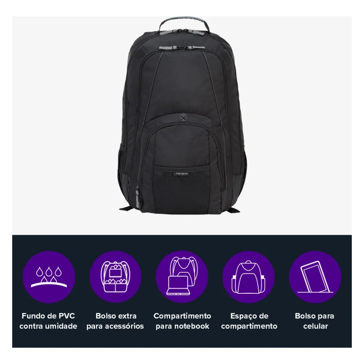Fabricada em poliéster resistente, a Mochila Targus Groove combina durabilidade, organização e um design moderno, sendo uma excelente escolha para quem busca uma mochila para notebook grande e funcional.