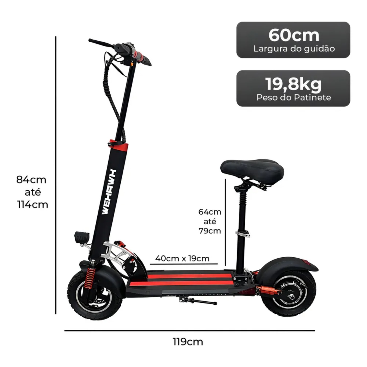 Patinete Elétrico WeHawk SSM ULTRA 8Ah – Potência e Conforto em Movimento