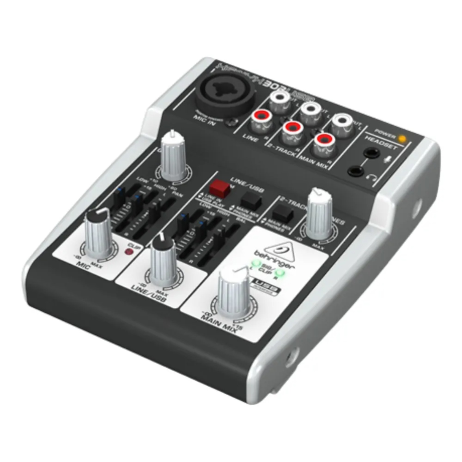 • Mixer de classe estúdio com 5 entradas e 2 grupos com pré-amplificador de microfone e EQ de 2 bandas;
