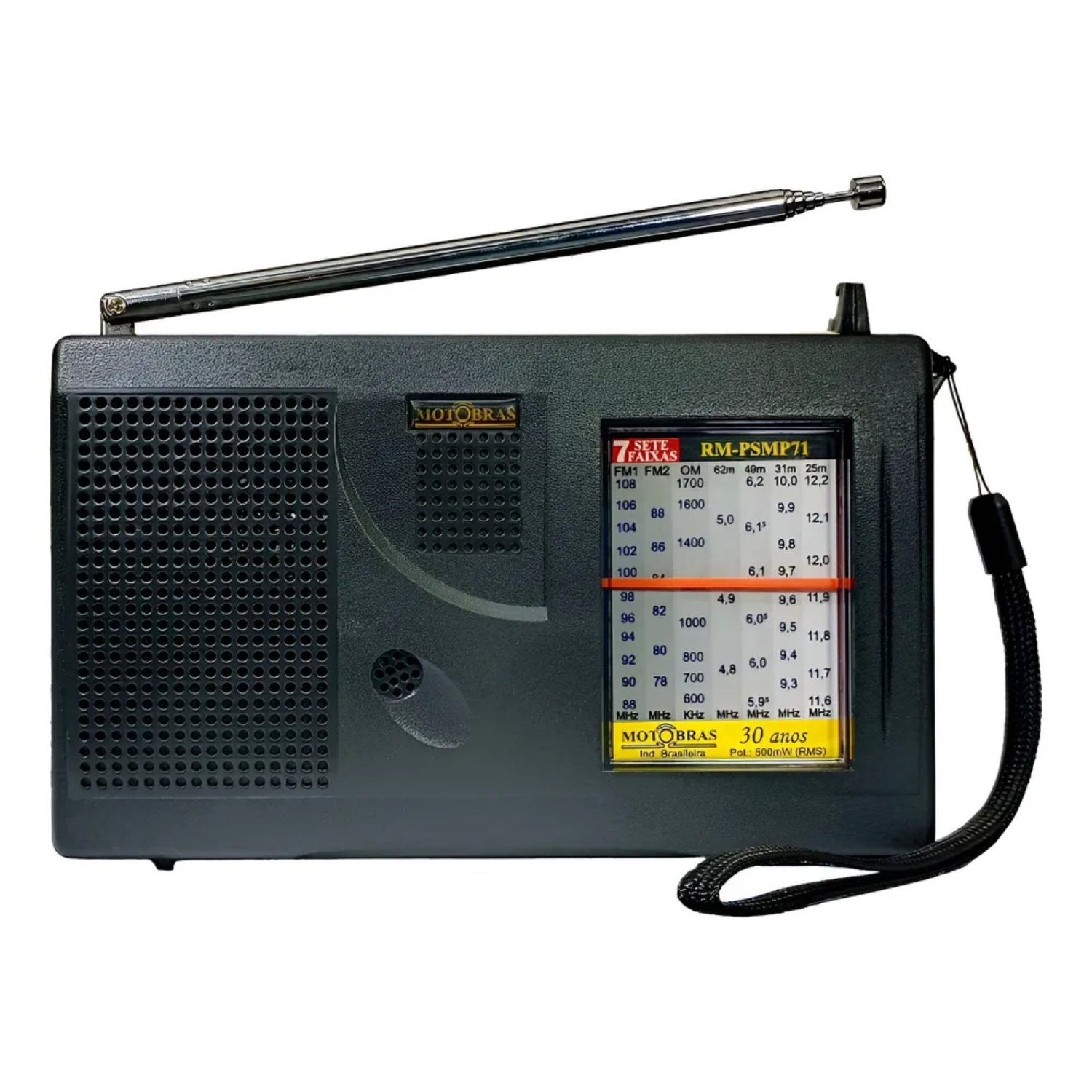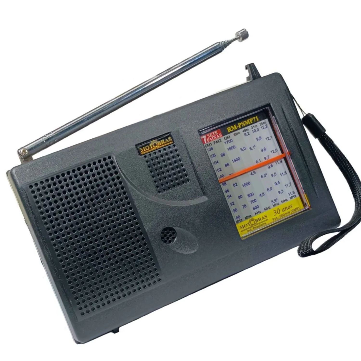 Rádio Portátil Motobras 0,5W Rms com 7 Faixas e Sintoniza Fm,Om e Oc - Rm-Psmp-71AC Preto