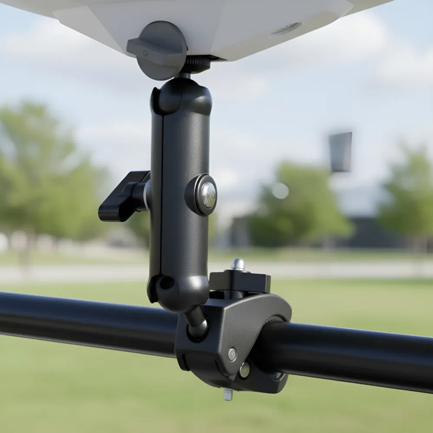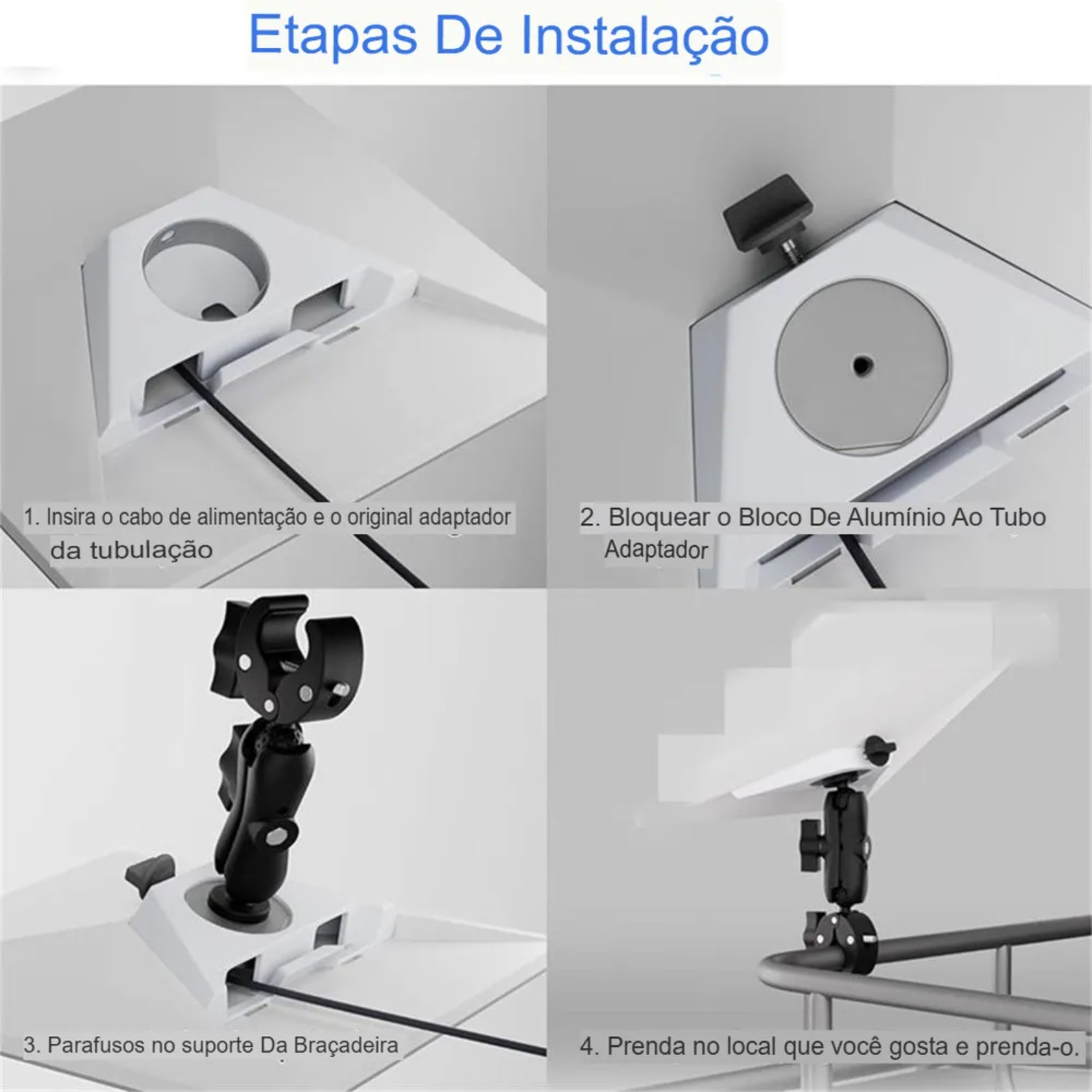Fixação reforçada: Grampo robusto que mantém estabilidade mesmo em condições de vento.