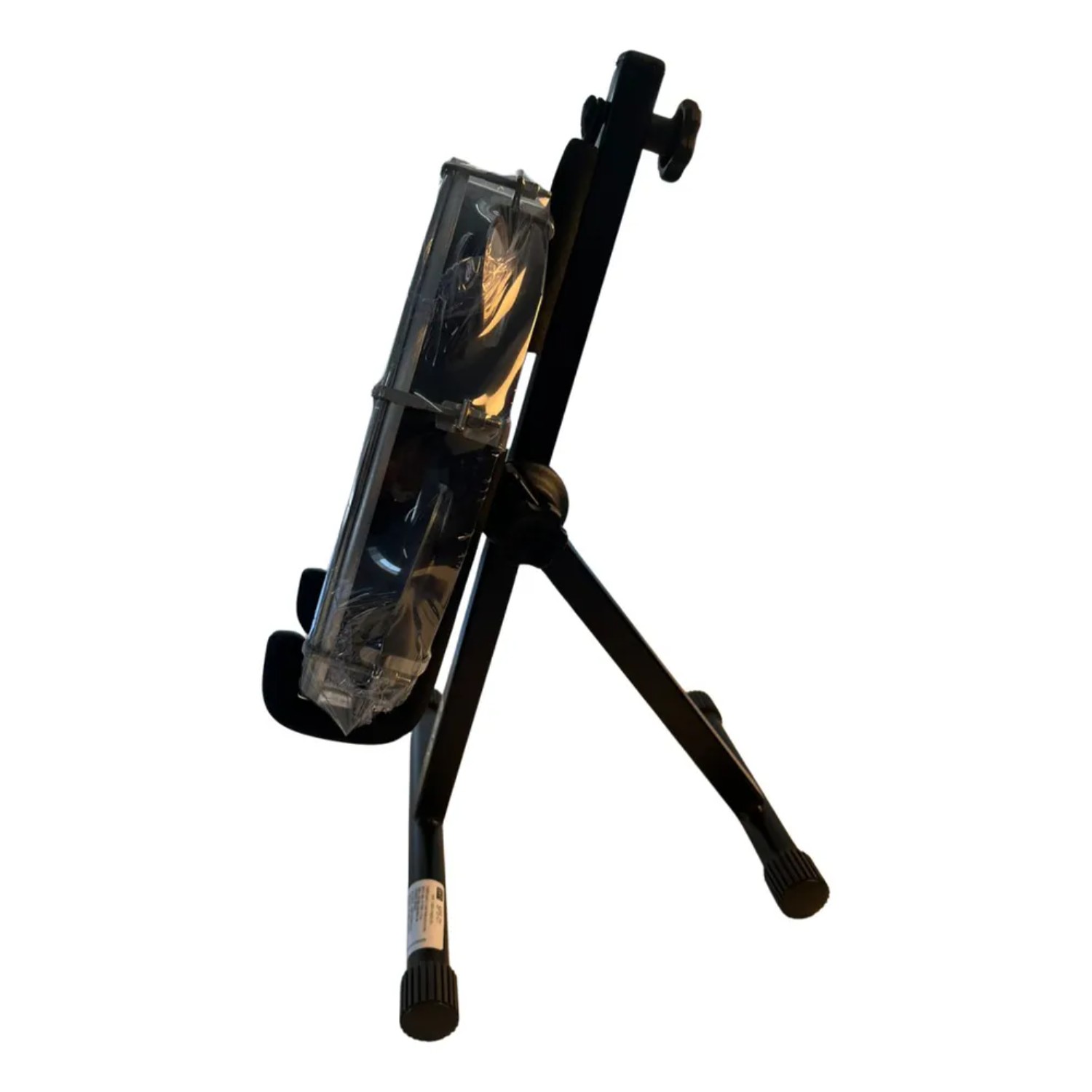 SUPORTE DE REBOLO, REPIQUE E TANTAN - SATY SPS01 - Contém: 01 suporte - Modelo: Ref SPS01 - Cor: Preto - Peso aproximado: 800g - Dimensões: 43 x 30 x 23 cm - Material: Metalon - Marca: Saty - Suporte Prime Este suporte é ideal para garantir a maior estabilidade dos seus instrumentos de percussão, como pandeiro e tamborim, sem danificá-los. Com uma estrutura robusta e quatro apoios, proporciona segurança durante o uso. A espuma de proteção é um diferencial que assegura a integridade do instrumento. Com base antiderrapante, evita deslizamentos indesejados. O suporte possui uma altura fixa de 43 cm, facilitando o posicionamento adequado dos instrumentos. A marca Saty, com mais de 25 anos de experiência, oferece um produto de qualidade impecável, projetado para atender as necessidades dos músicos.
