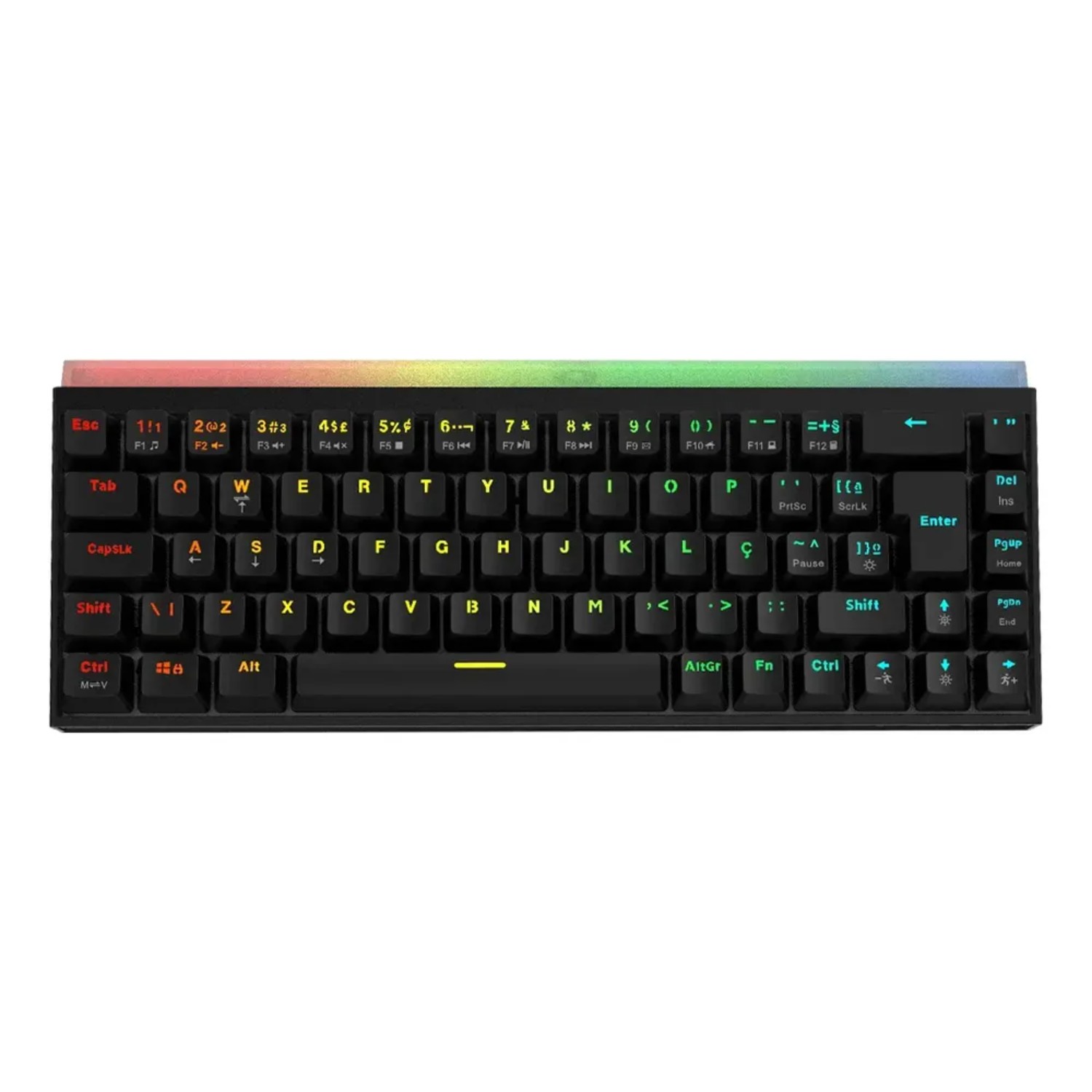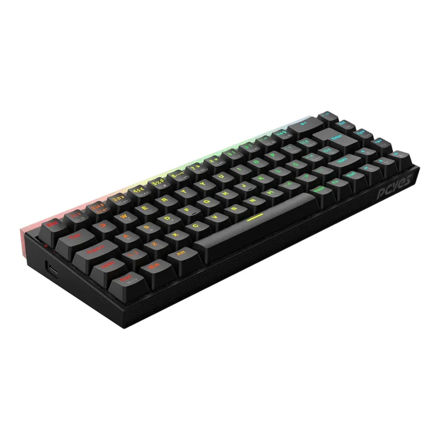 O Teclado Pcyes Shiyan é o seu mais novo aliado para enfrentar os maiores desafios. Layout Compacto Seu formato compacto 60% pode se adaptar a diferentes cenários. Seja numa mesa pequena ou na pegada ideal para os games, tenha liberdade e espeço de sobra, sem abrir mão do layout ABNT2. Precisão e Durabilidade Equipado com switches mecânicos Outemu você tem a garantia de ótimo desempenho por dezenas de milhões de cliques, além da garantia de um ano válida em todo o território nacional, com a excelência no atendimento que só a Pcyes oferece. O anti-ghosting garante que todos os comandos serão registrados sem erros e sem demora com a velocidade de transferência de 1ms. Visual sem Igual Já equipado com keycaps confeccionadas com o método double shot injection e iluminação rainbow o teclado Shiyan trás um visual incrível e muita eficiência para seu setup. Switch Outemu Blue Keycaps Doubleshot Injection Formato 60% 69 teclas Layout ABNT2 Anti ghosting 100% Iluminação Rainbow em blocos Barra de LED RGB Cabo removível USB de 1,8m - USB x Type C Medidas aproximadas do produto: Medidas aproximadas da embalagem: 330 x 47 x 145 (mm)