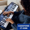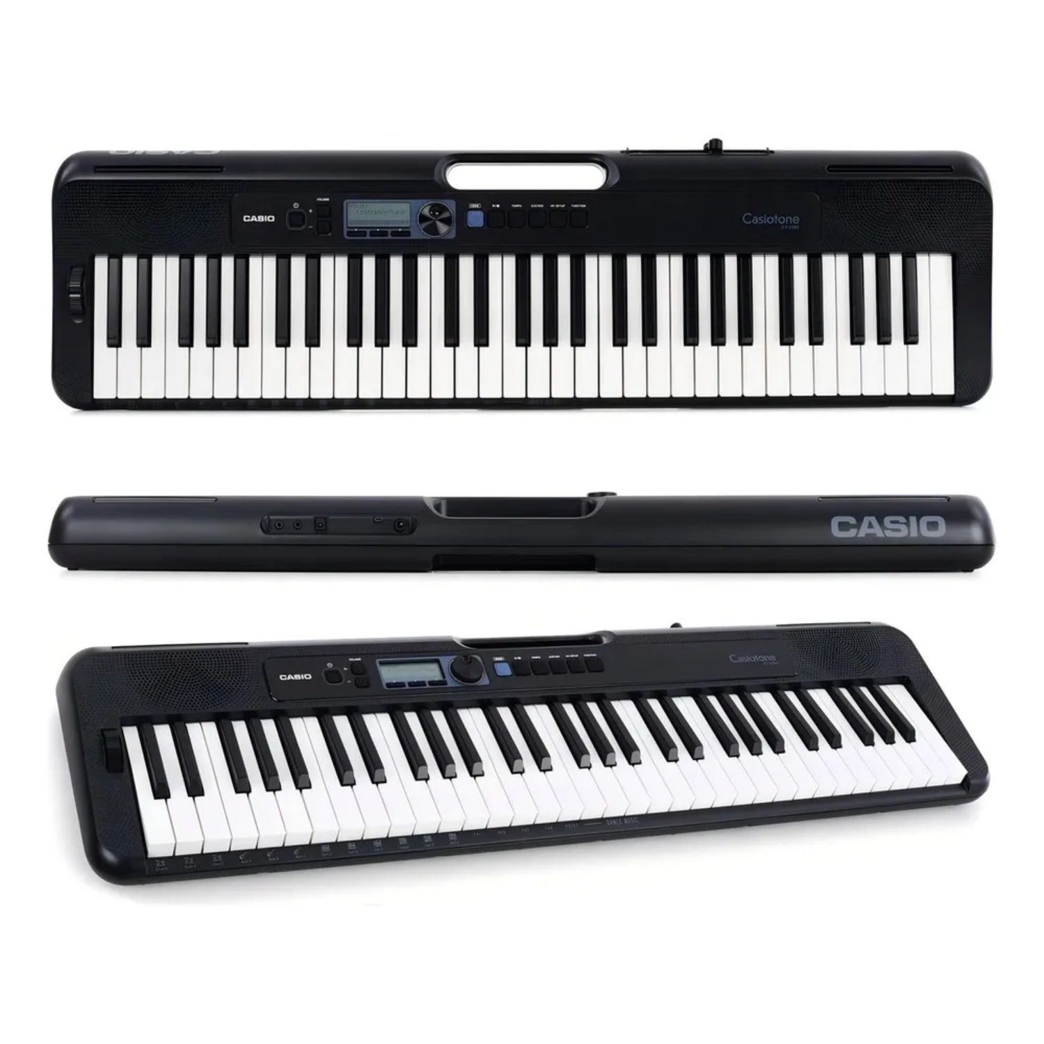 Com o CT-S300, você curte sua música quando e onde quiser. Com tamanho compacto, de 930 mm x 256 mm x 73 mm, ele apresenta um volume 30% menor do que o modelo CTK-3500 e oferece aproximadamente 19 horas de autonomia com pilhas alcalinas*. A alça na parte superior do teclado oferece maior praticidade para transporte do instrumento, que pesa somente 3,3 kg. Graças ao design arredondado das suas bordas e arestas, carregá-lo também é muito seguro.