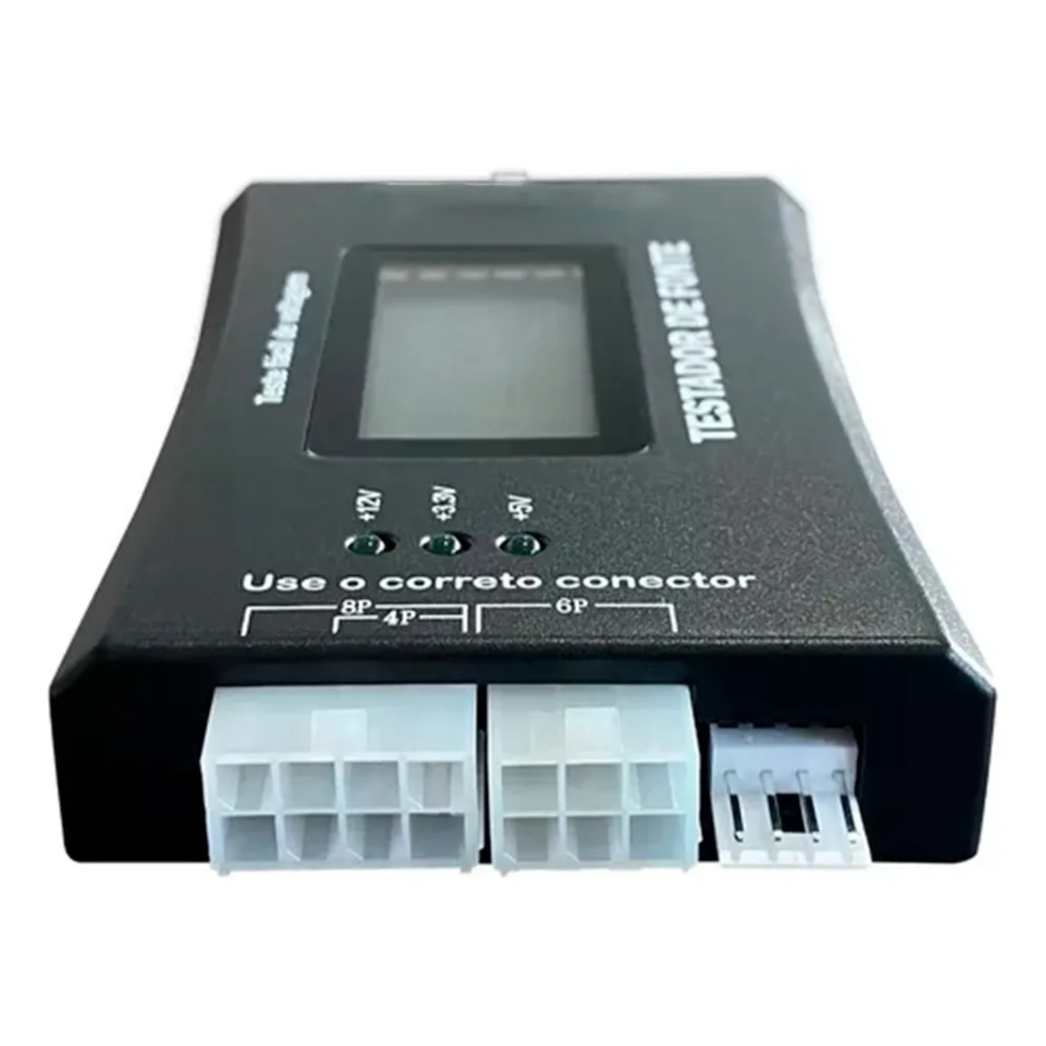 Compatível com conectores ATX de 20 e 24 pinos, SATA, Molex (IDE), CPU 4/8 pinos, PCI-E e FDD, o testador exibe em um display LCD de fácil leitura os valores de tensão em tempo real, ajudando a identificar falhas antes que causem prejuízos.